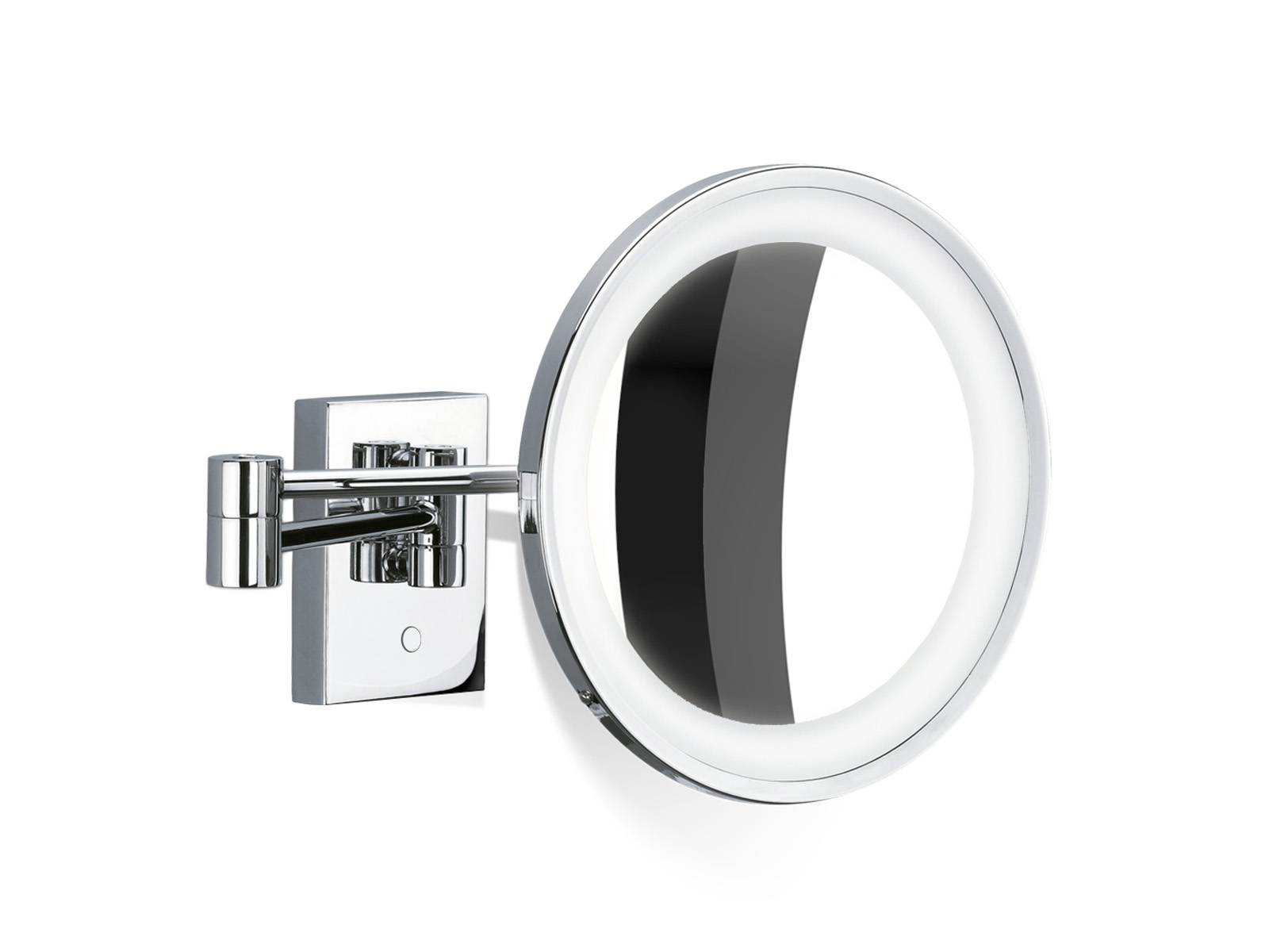Konstrukcja lusterka wykonana z wysokiej jakości chromowanego mosiądzu, posiada ruchome łamane ramię umocowane na prostokątnej podstawie.