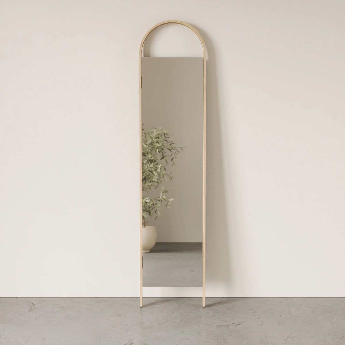 Lustro Bellwood to podłogowe przyścienne lustro, które stawiamy na podłodze i opieramy o ścianę. Lustro posiada również charakterystyczny dla kolekcji element stylistyczny w postaci drewnianego łuku.