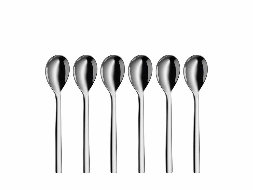 Elegancki komplet 6-ściu niewielkich łyżeczek w rozmiarze i kształcie idealnie dopasowanym do krzywizn filiżanki espresso.