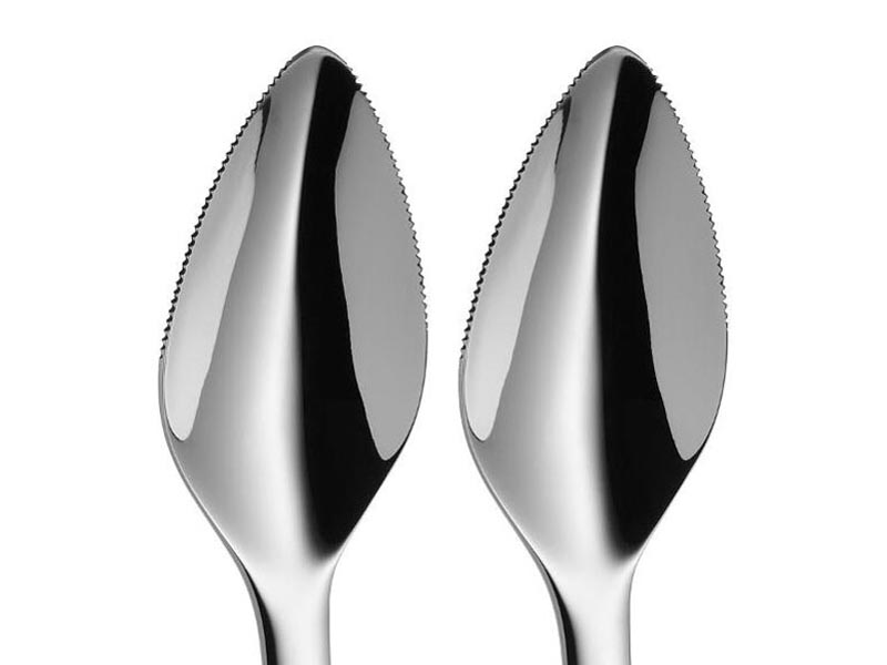 Główki łyżeczek smukłe o lekko spiczastym zakończeniu z ząbkowaną krawędzią ułatwiającą oddzielanie kawałków miąższu owocu.