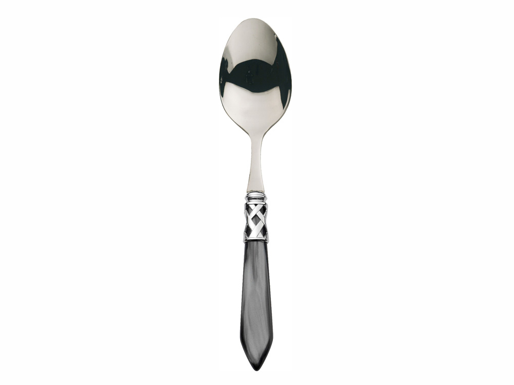 Piękna ozdobna łyżka stołowa obiadowa wykonana z wysokiej jakości stali nierdzewnej z akrylowym trzonkiem w kolorze perłowej czerni.