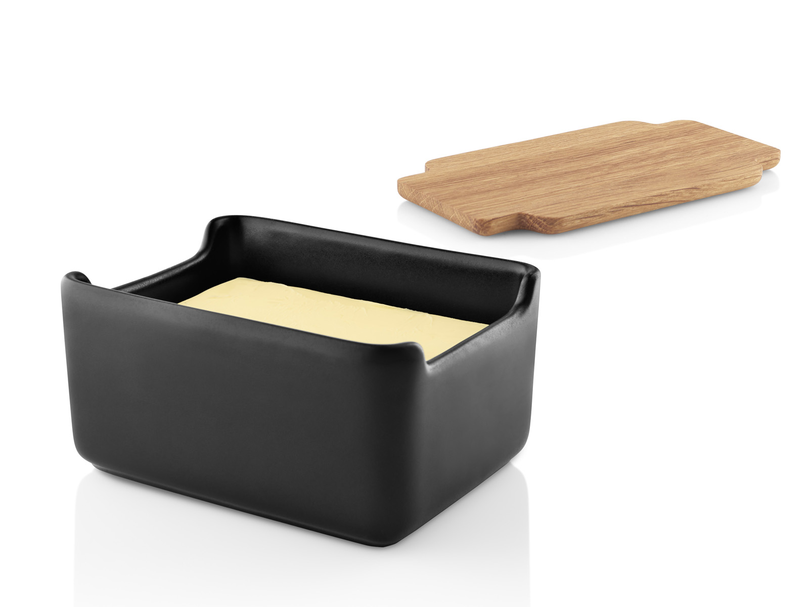 Zdejmowana pokrywka wykonana jest z naturalnego olejowanego drewna dębowego i zapewnia, że podczas przechowywania masło nie chłonie zapachów otoczenia.