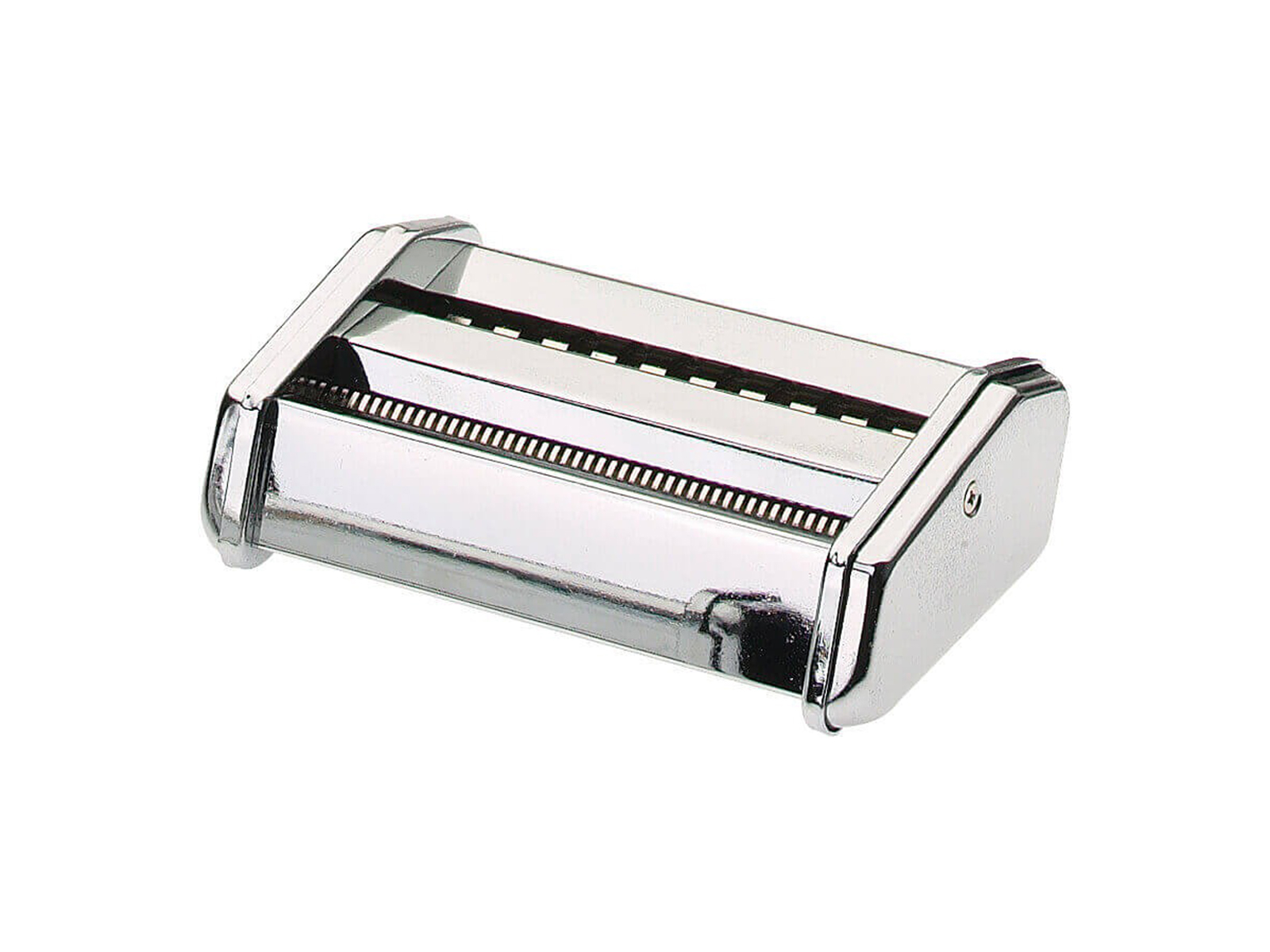 Maszynka do makaronu GEFU Pasta Perfetta De Luxe to prawdziwy skarb dla pasjonatów domowej pasty, pozwalający przygotować aż sześć różnych wariantów makaronu: spaghetti, tagliatelle, taglionlini, lasagna, lasagne ricce oraz ravioli. Napęd korbowy z pokrętłem pozwala na płynną regulację grubości ciasta od 0,2 mm do 3 mm przy szerokości 145 mm, co gwarantuje perfekcyjną konsystencję każdego rodzaju makaronu. Trzy wymienne nakładki umożliwiają tworzenie różnych kształtów, a antypoślizgowa podstawa wraz z uchwytem do przykręcenia zapewniają stabilność podczas pracy. Wykonanie z wysokiej jakości stali nierdzewnej i tworzywa sztucznego przedłuża trwałość maszynki na długie lata, a ręczne czyszczenie pozwala zachować jej idealny stan.