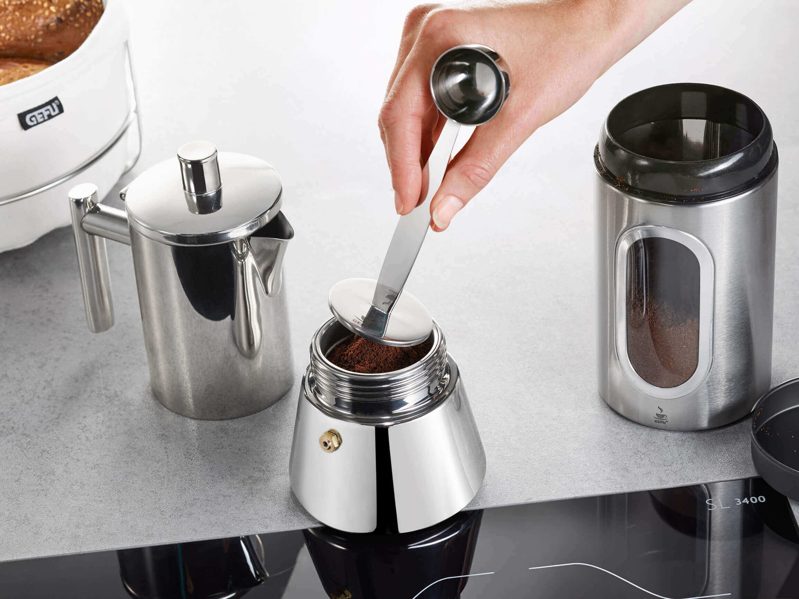 Miarka z tamperem GEFU Tamino jest idealnym wyborem dla każdego miłośnika mielonej kawy.