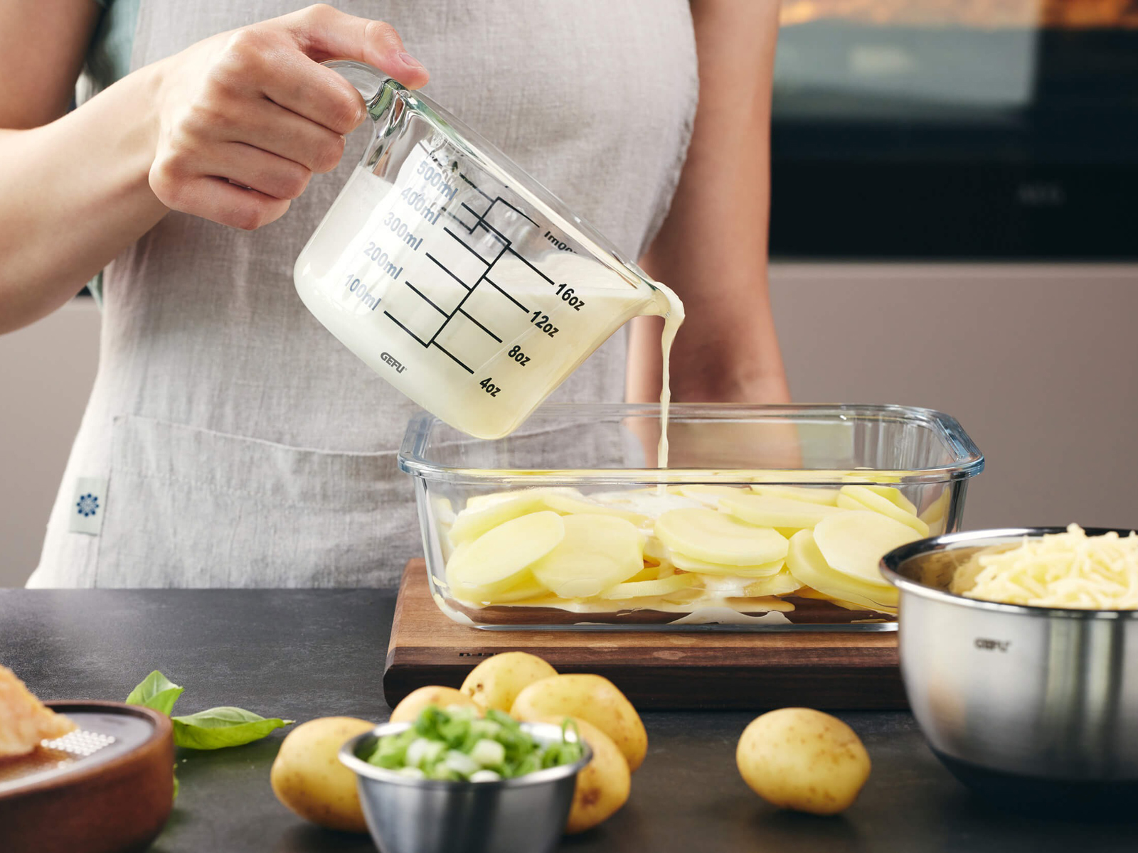 Dzbanek z miarką Dimenso to praktyczny i niezastąpiony pomocnik w każdej kuchni. Dzięki wyraźnym oznaczeniom na korpusie, odmierzanie składników staje się łatwe i precyzyjne, co znacznie usprawnia gotowanie i pieczenie. Wykonany z żaroodpornego szkła borokrzemowego, jest odporny na temperatury aż do 450°C, co czyni go idealnym do mieszania, podgrzewania w kuchence mikrofalowej oraz przechowywania różnych składników. Dodatkowo dzbanek Dimenso można myć w zmywarce, co zapewnia wygodę i łatwość utrzymania go w czystości. To wszechstronne narzędzie, które z pewnością przypadnie do gustu każdemu, kto ceni sobie funkcjonalność i komfort w kuchni.
