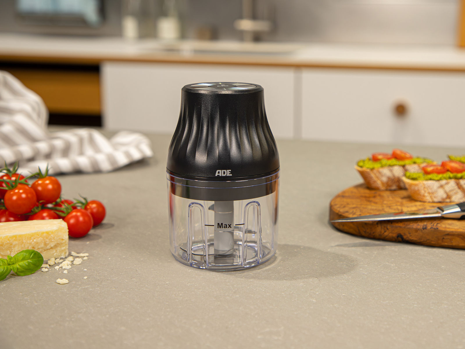 Mini-siekacz ADE to kompaktowe urządzenie, które sprawdzi się przy rozdrabnianiu cebuli, czosnku, orzechów i świeżych ziół. Zasilanie baterią ładowaną przez USB-C eliminuje konieczność używania przewodów podczas pracy, co znacznie zwiększa wygodę użytkowania. Potrójne ostrze ze stali nierdzewnej zapewnia dokładne siekanie, a obsługa jednym przyciskiem – intuicyjne działanie. Przy dłuższym naciśnięciu można uzyskać drobniej posiekane składniki według własnych potrzeb. Pojemnik i ostrza nadają się do mycia w zmywarce.