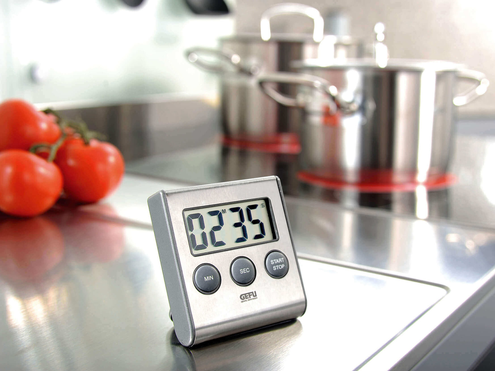 Minutnik elektroniczny GEFU Contare gwarantuje pełną kontrolę nad czasem w eleganckiej, srebrnej formie.