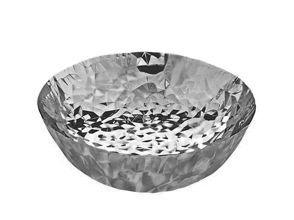 Duża otwarta forma naczynia o nieokreślonych krawędziach w połączeniu z grą refleksów powierzchni przypomina przedmioty wykonane ręcznie z metali szlachetnych.