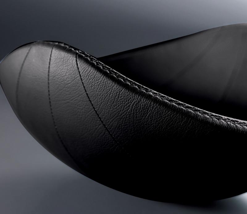 Wewnętrzna konstrukcja misy wykonana ze stali nierdzewnej z zewnątrz pokryta naturalną skórą o delikatnych łączeniach oraz ozdobnym przeszyciu na brzegu misy.