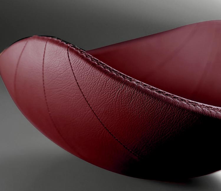 Wewnętrzna konstrukcja misy wykonana ze stali nierdzewnej z zewnątrz pokryta naturalną skórą o delikatnych łączeniach oraz ozdobnym przeszyciu na brzegu misy.