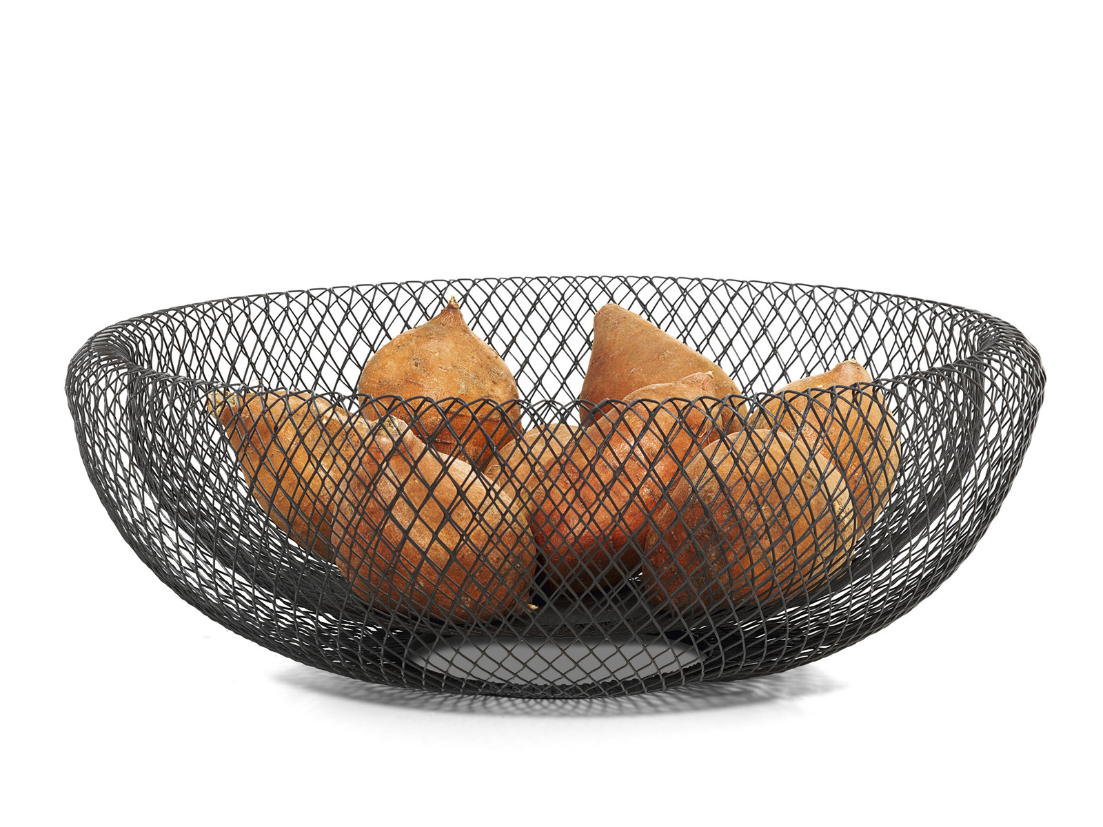 Misa wykonana jest z podwójnej warstwy malowanej proszkowo stalowej siateczki, która nadaje naczyniu lekkości oraz przestrzenności.