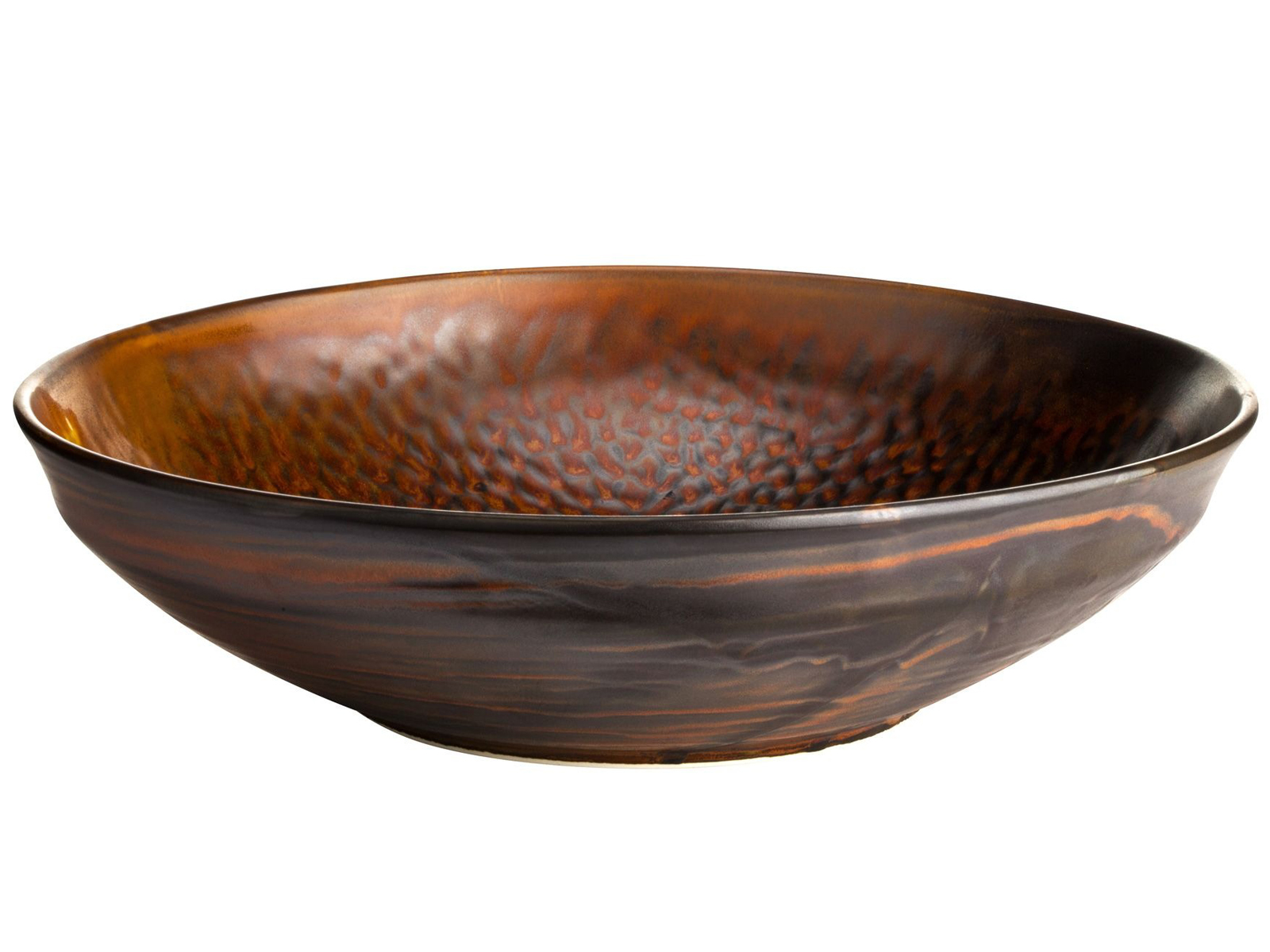 Verlo Fire to niezwykle inspirująca kolekcja, w której zaklęto siłę magmy i żar palonej ziemi. Cała zastawa emanuje nie tylko ciepłem, ale i różnorodnością form, faktur, wzorów i odcieni, uzyskanych dzięki reaktywnemu szkliwu i ręcznemu zdobnictwu. Naczynia pulsują pod matową powierzchnią barwami stygnącej lawy – pomarańczami, żółciami i głębokimi brązami, które podsycają żywiołowy charakter. Młotkowana struktura z wgłębieniami i wypukłościami nadaje talerzom wygląd spękanej wulkanicznej skorupy, a marszczenia – wrażenie mineralnej głębi i metalicznego blasku. Nieregularne paski, plamki, smugi przypominają języki płomieni i krople topionych skał, a falujące ranty brytfann i ramekinów wyglądają jak formowane w samym sercu wulkanu.