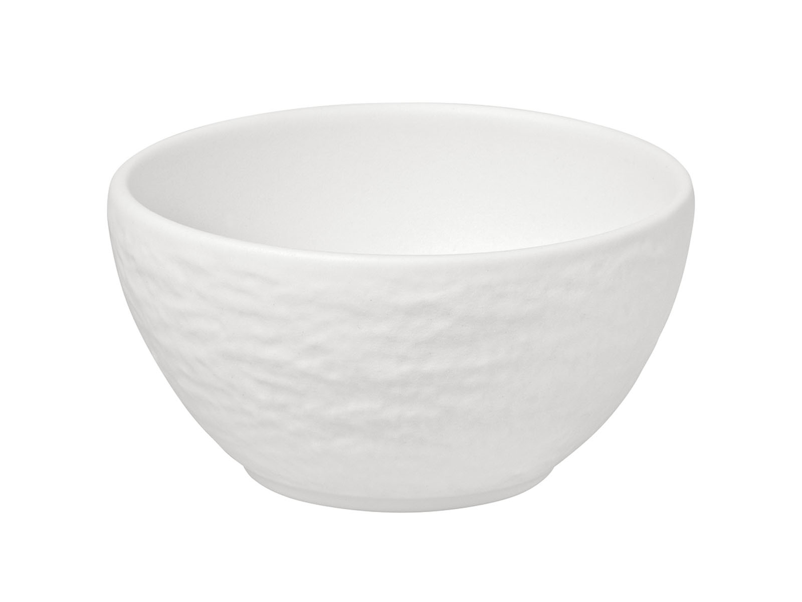 Villeroy&Boch Manufacture Rock White to wyjątkowa kolekcja niezwykle oryginalnej i niebanalnej zastawy stołowej wykonanej z najwyższej jakości porcelany. Stylistycznie kolekcja inspirowana jest naturalną strukturą kamienia, która, w zależności od elementu kolekcji i jego przeznaczenia, jest wykorzystywana na całej powierzchni naczynia lub tylko na jego cześci. Głębia uzyskanej struktury robi ogromne wrażenie wizualne, a biały kolor oraz piękna matowa powierzchnia uzupełniają i dopełniają niesamowity efekt.