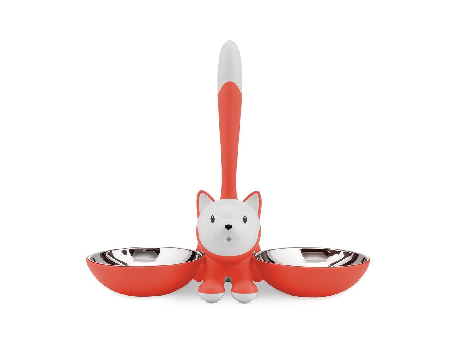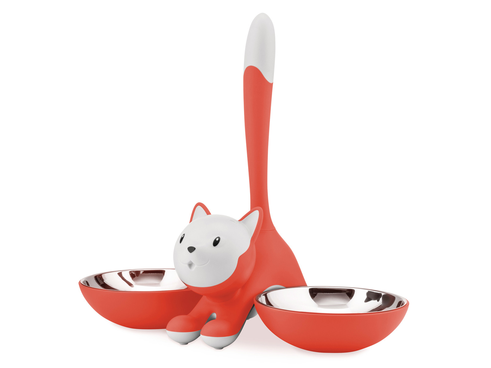 Alessi Tigrito to oryginalna i bardzo praktyczna miska dla kota zaprojektowana przez Miriam Mirri dla marki Alessi. Składa się dwóch miseczek połączonych figurką kota, której ogon pełni funkcję uchwytu do przenoszenia.