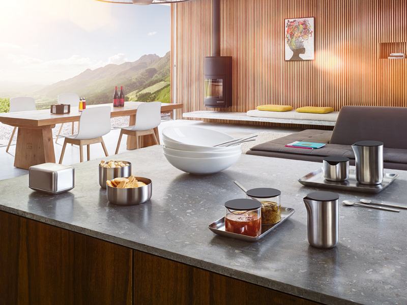 Blomus Basic to oryginalna kolekcja zastawy stołowej na którą składają się naczynia stołowe takie jak mleczniki, cukiernice, maselniczki różnej wielkości miseczki oraz tacki. Kolekcja charakteryzuje się prostą, niezobowiązującą, a jednocześnie zdecydowaną formą, która została stworzona nie tylko z myślą o funkcjonalności, ale również z myślą o walorach estetycznych.