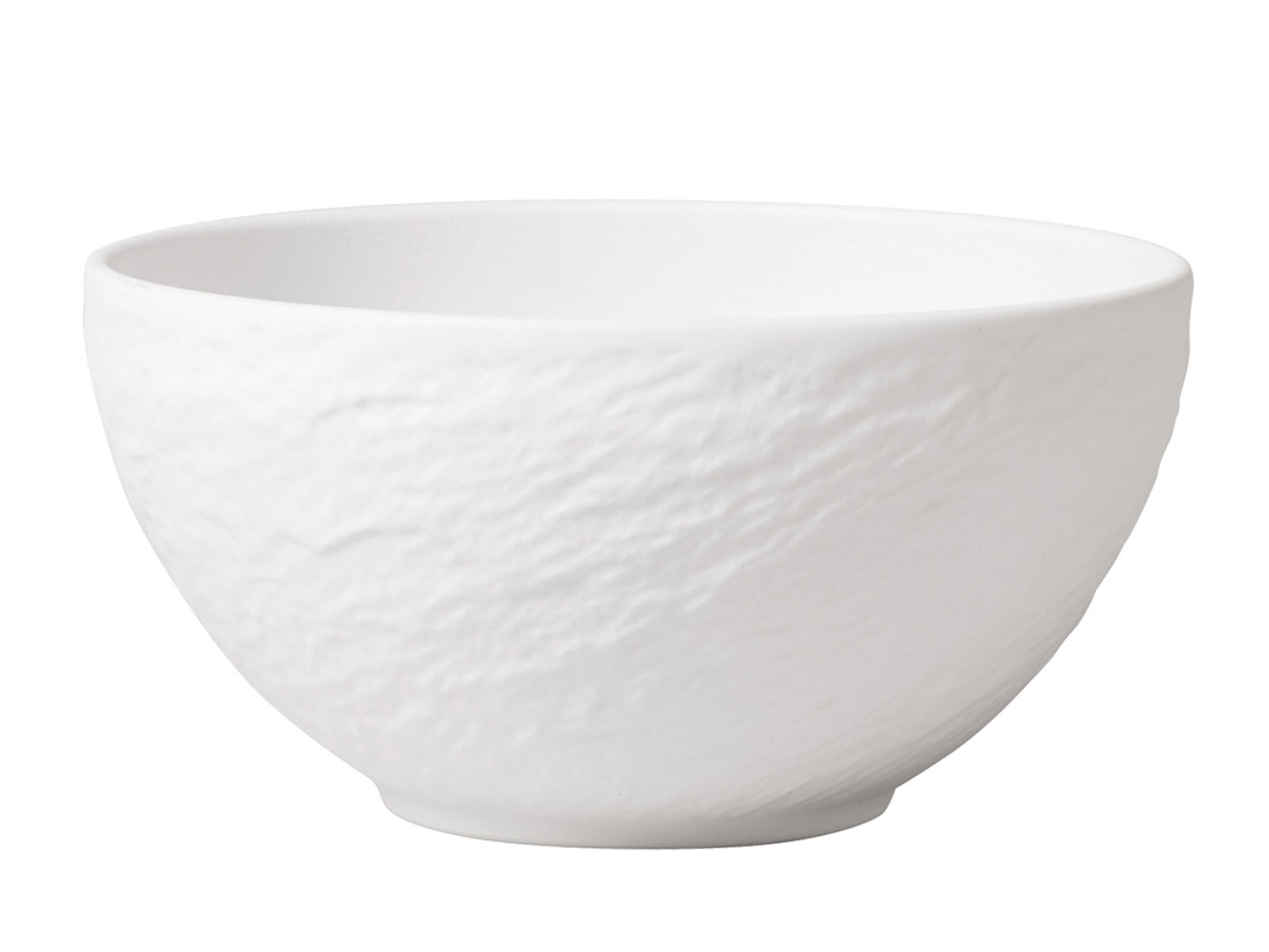 Villeroy&Boch Manufacture Rock White to wyjątkowa kolekcja niezwykle oryginalnej i niebanalnej zastawy stołowej wykonanej z najwyższej jakości porcelany. Stylistycznie kolekcja inspirowana jest naturalną strukturą kamienia, która, w zależności od elementu kolekcji i jego przeznaczenia, jest wykorzystywana na całej powierzchni naczynia lub tylko na jego cześci. Głębia uzyskanej struktury robi ogromne wrażenie wizualne, a biały kolor oraz piękna matowa powierzchnia uzupełniają i dopełniają niesamowity efekt.