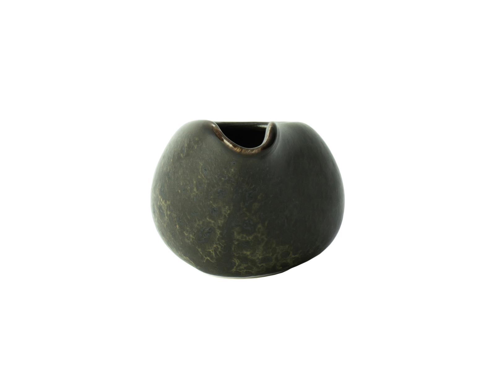 Verlo Alga to kolekcja ręcznie zdobionej porcelany, inspirowana głębinami i roślinnością podwodnego świata. Ciemnozielone odcienie, drobne, okrągłe wzory i pofalowane ranty przywodzą na myśl algi poruszające się w rytmie prądów morskich. Półmatowa powierzchnia w połączeniu z subtelnie nakrapianą glazurą sprawia, że naczynia żyją grą świateł i cieni, niczym fale oceanu za dnia i w nocy. Wszędzie obecne zróżnicowanie faktur i wydłużone kształty mleczników podkreślają organiczny charakter całości. Dzięki reaktywnemu szkliwu każdy element zastawy zyskuje wygląd niepowtarzalnego wyłowionego skarbu.