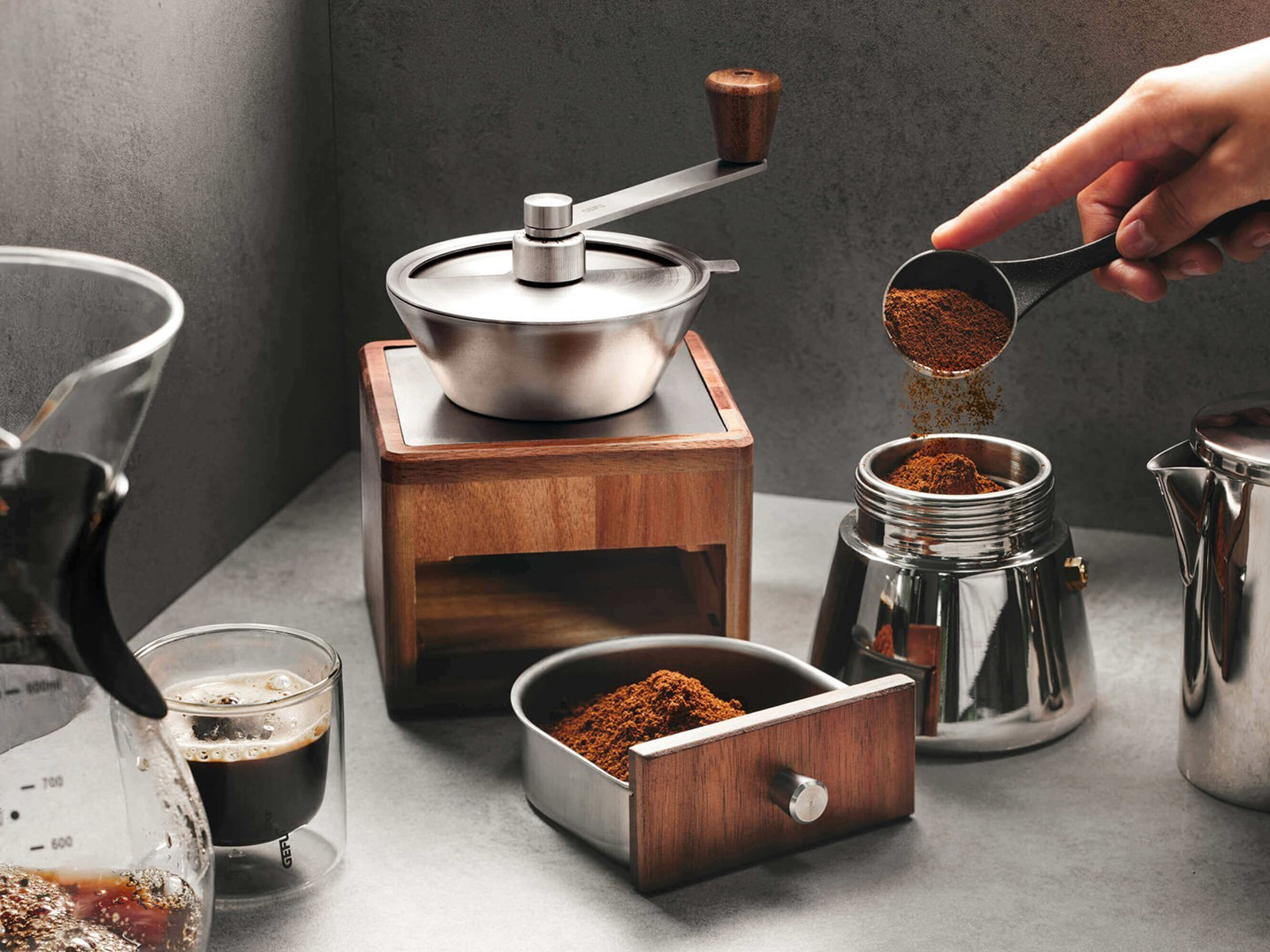 Stylowy młynek do kawy z regulacją grubości mielenia
