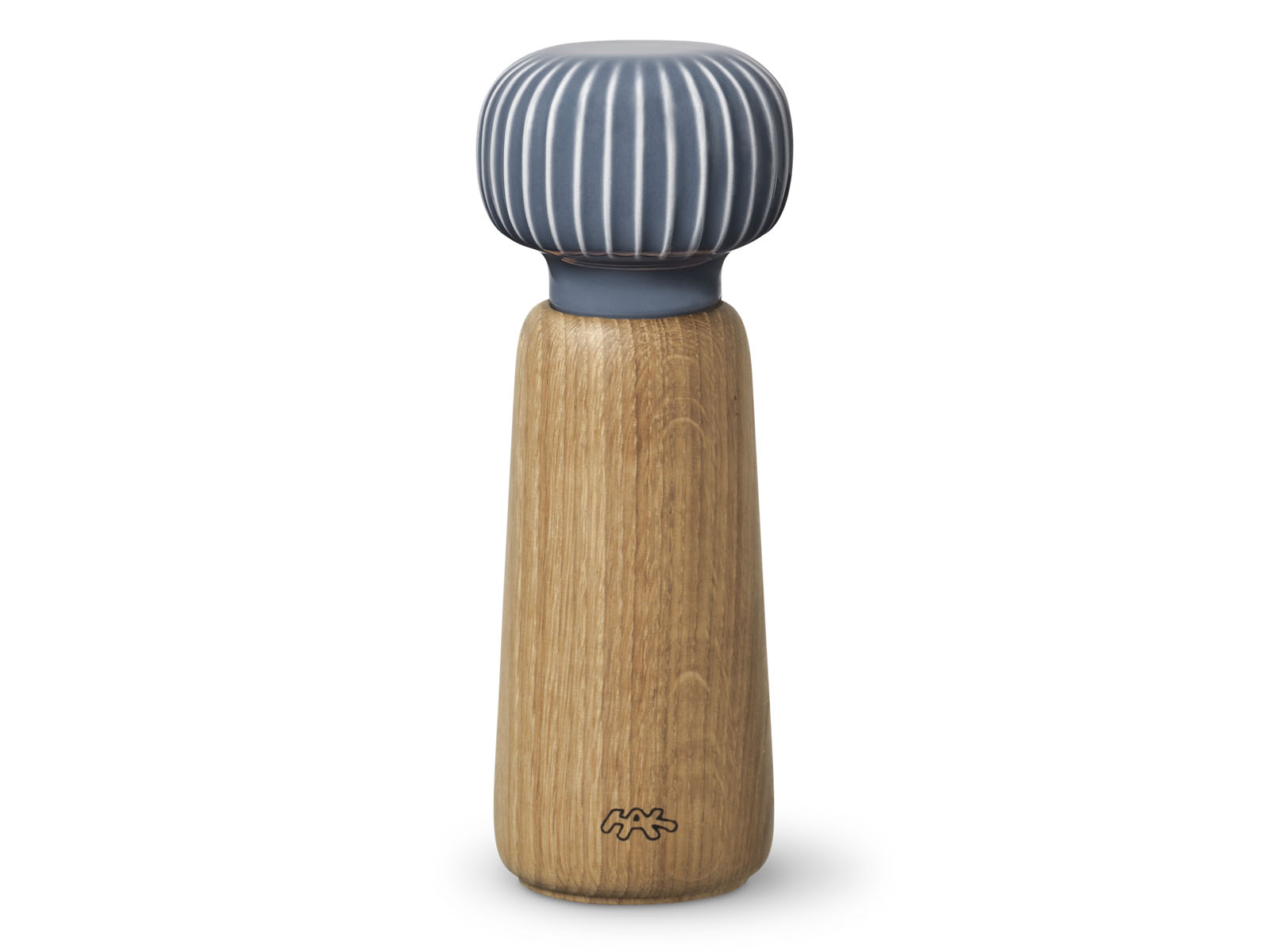 Młynek do soli lub pieprzu Hammershøi idealnie wpisuje się w klimat i stylistykę kolekcji. Młynek wykonany jest z pięknego olejowanego drewna dębowego, a zwieńczony jest gałką ozdobioną charakterystycznymi dla kolekcji żłobieniami. Mechanizm mielący pochodzi od znanej z produkcji jednych z najlepszych mechanizmów, firmy CrushGring i objęty jest 25-letnią gwarancją.