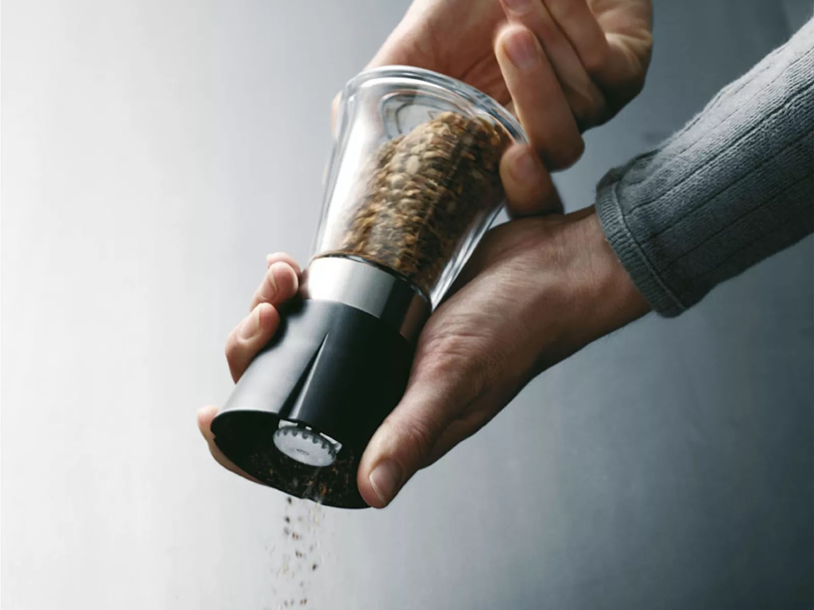 Prezentowany młynek sprawdzi się zarówno kuchni jak i w jadalni. Dzięki mechanizmowi mielącemu umieszczonemu na górze młynka, resztki zmielonych przypraw nie rozsypują się po odstawieniu młynka a szklany korpus umożliwia szybkie rozróżnienie zawartości.