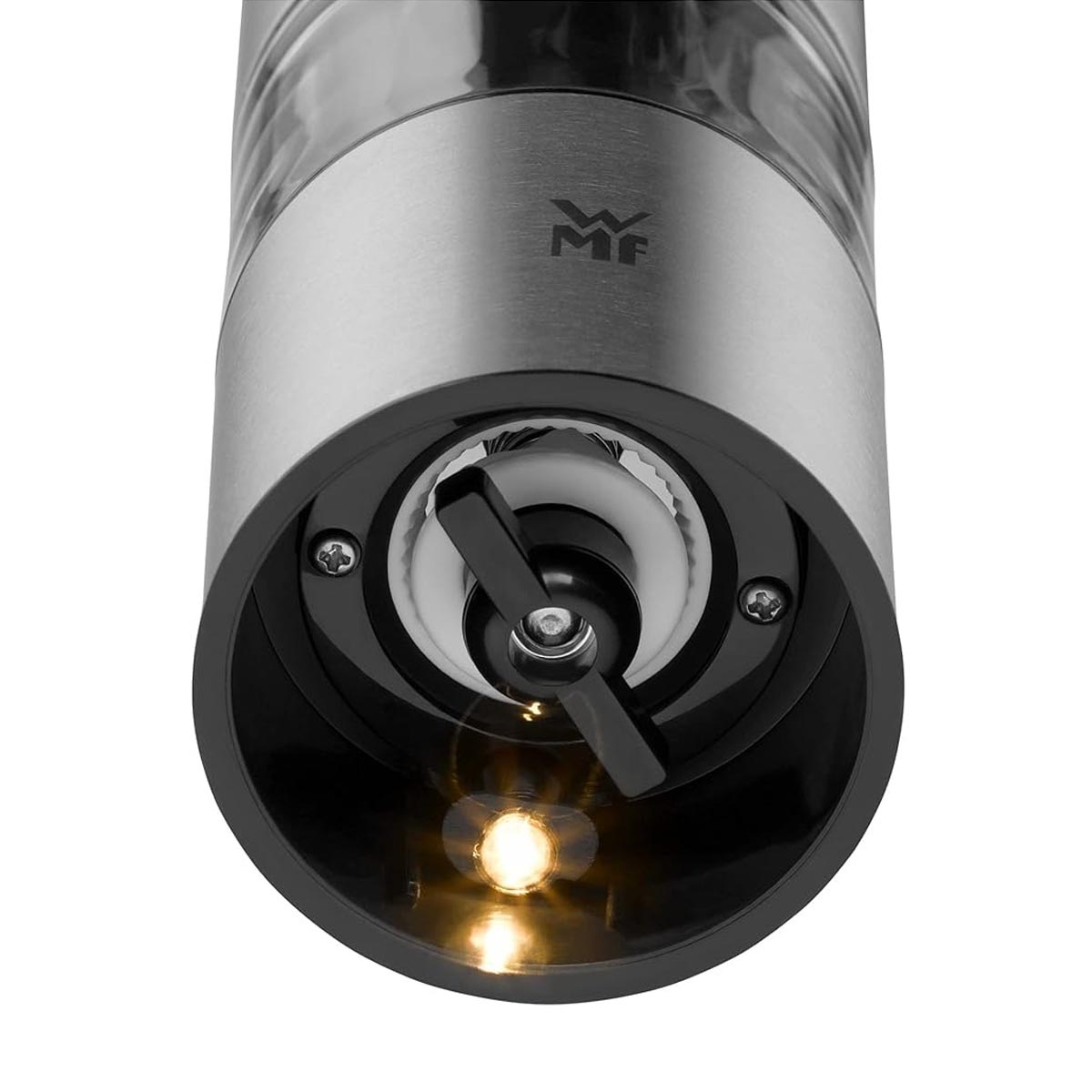 Młynek pod spodem posiada zintegrowane oświetlenie LED zapewniające optymalną widoczność ilości dozowania przypraw przy słabym oświetleniu lub w wysokich naczyniach - światło pod młynkiem włącza się automatycznie podczas mielenia.