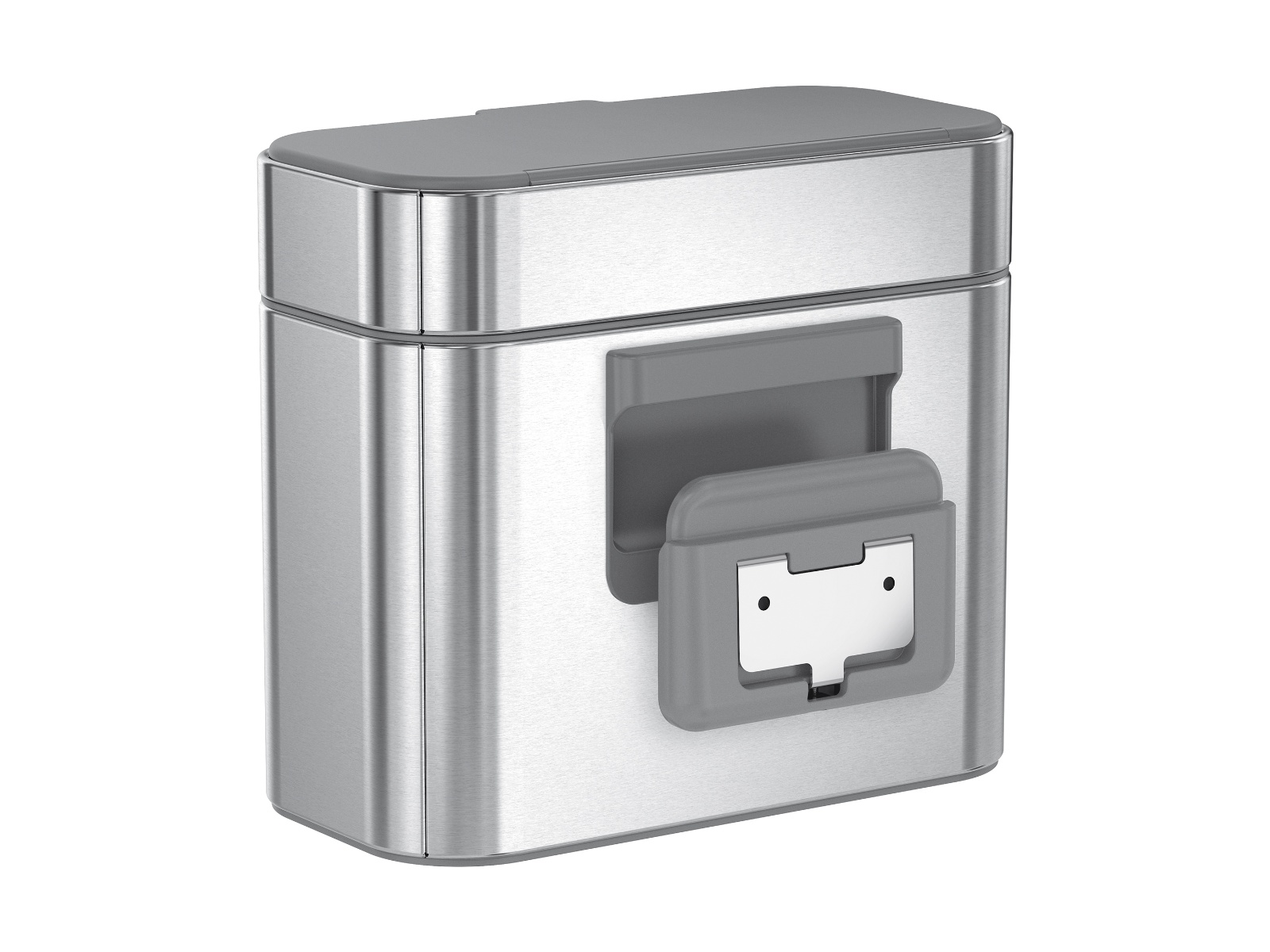 Mocowanie działa na magnes, dzięki czemu można je łatwo zdjąć, aby wygodnie zebrać resztki jedzenia z pojemnika. Wykonane jest ze szczotkowanej stali nierdzewnej.