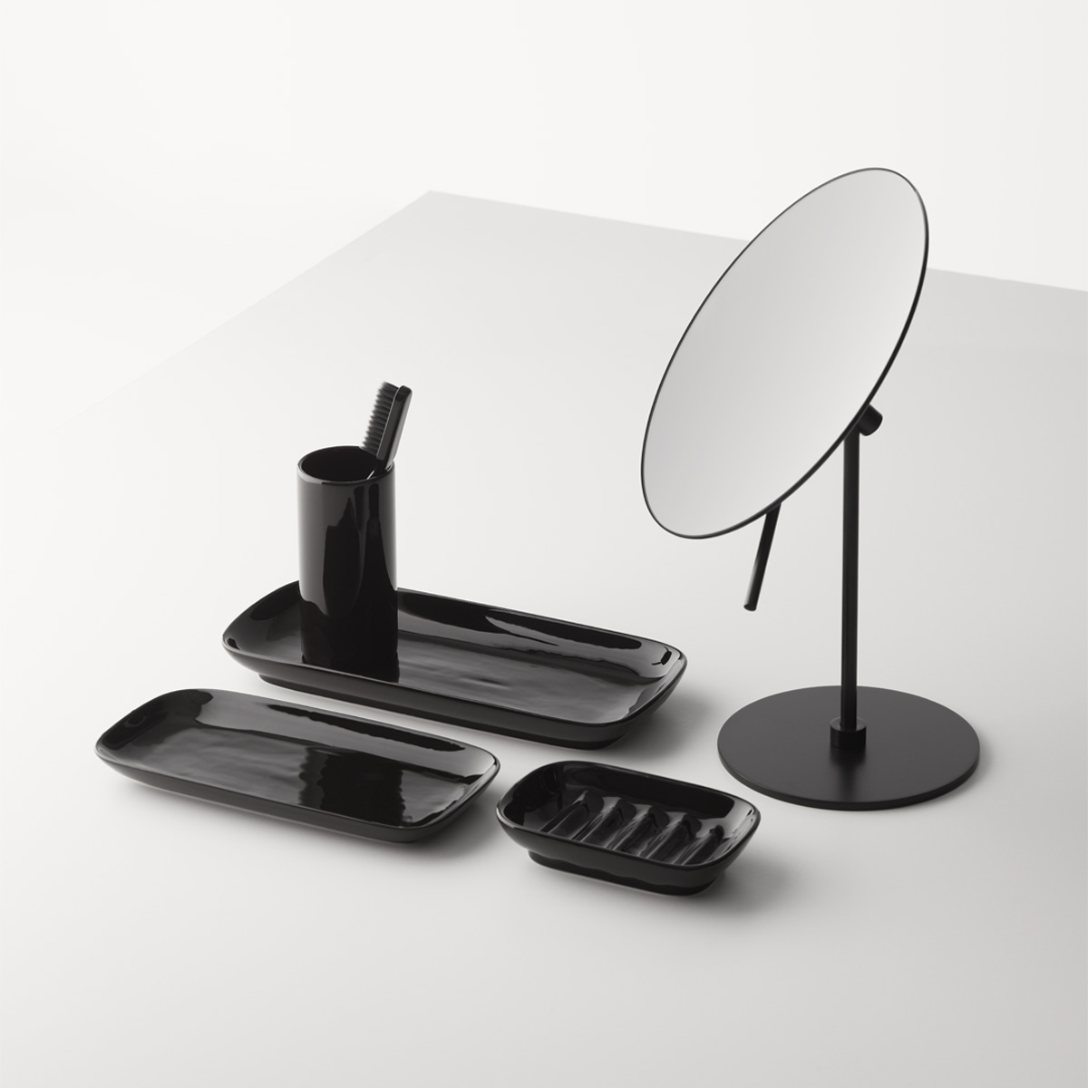 Mydelniczka wykonana z czarnej gładkiej porcelany.