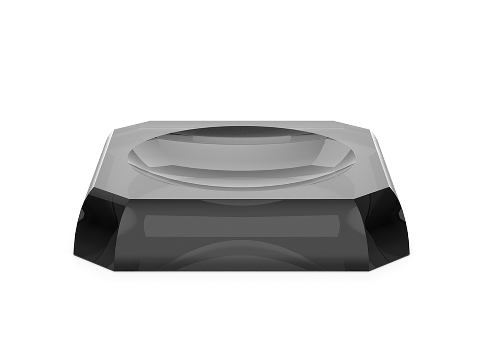 Mydelniczka o charakterystycznym geometrycznym kształcie o "ciętych" bokach dodatkowo podkreślających blask załamującego się światła.