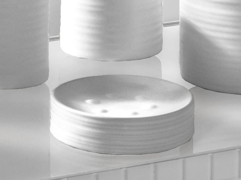 Kolekcja Sahara to akcesoria ceramiczne nawiązujące swoją stylistyką do natury. Poprzeczne, nieregularne karbowanie do złudzenia przypomina efekt uzyskany w tradycyjnym garncarstwie.