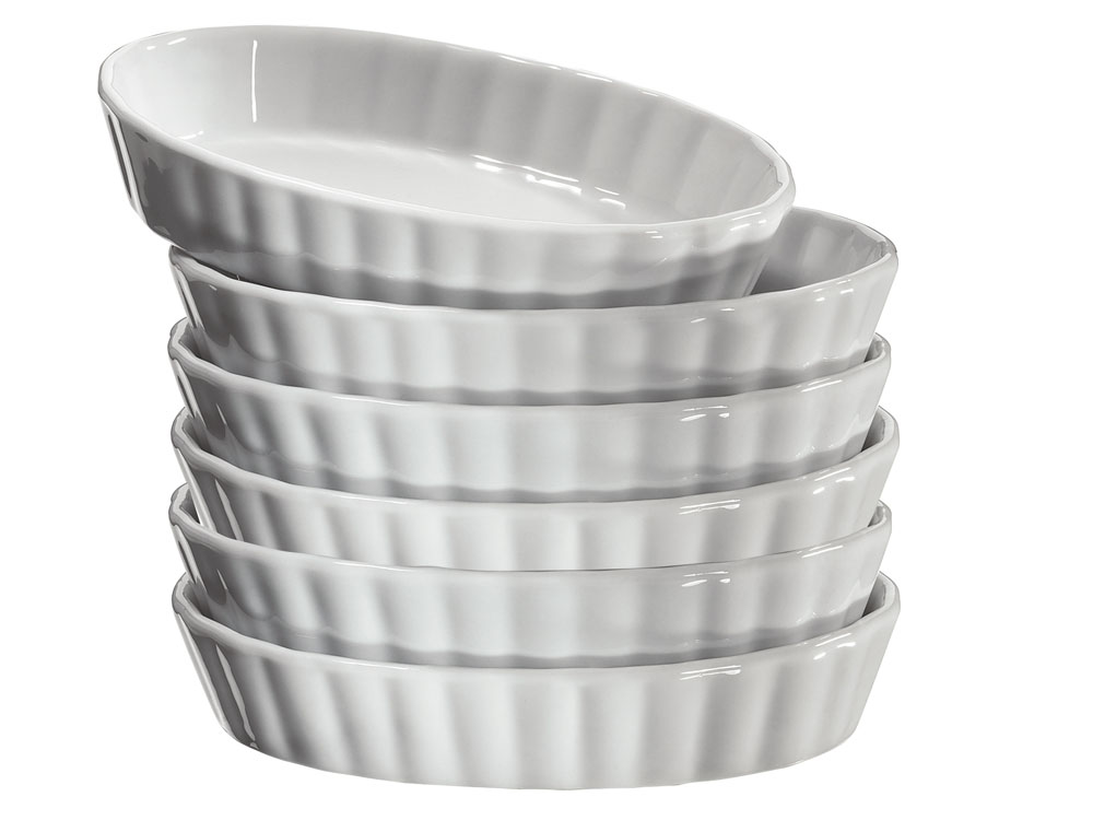 Zestaw oryginalnych porcelanowych naczyń do zapiekania deserów w piekarniku.