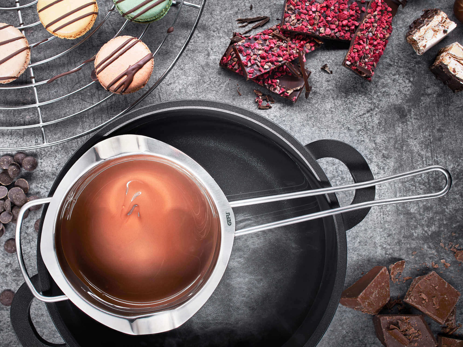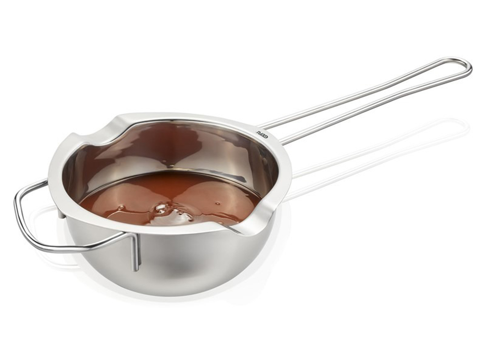 Naczynie GEFU Melto ułatwia przygotowywanie domowych deserów i dekoracji cukierniczych z idealnie gładką czekoladą.