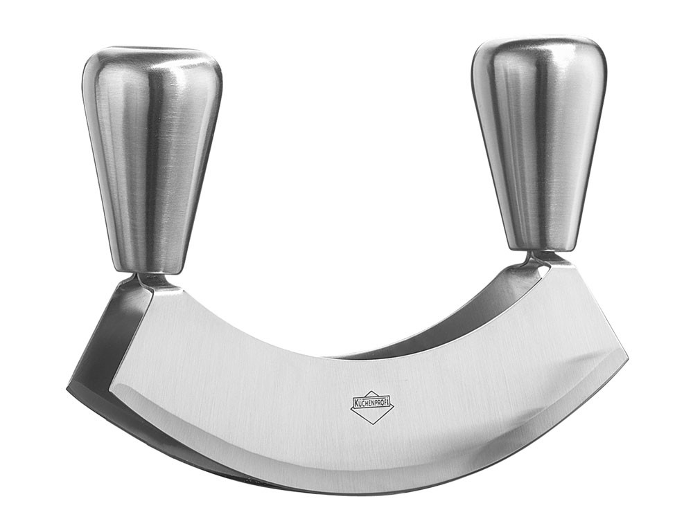 Ostrza zakończone dwoma wygodnymi uchwytami doskonale nadaje się do siekania ziół, cebuli czy orzechów.
