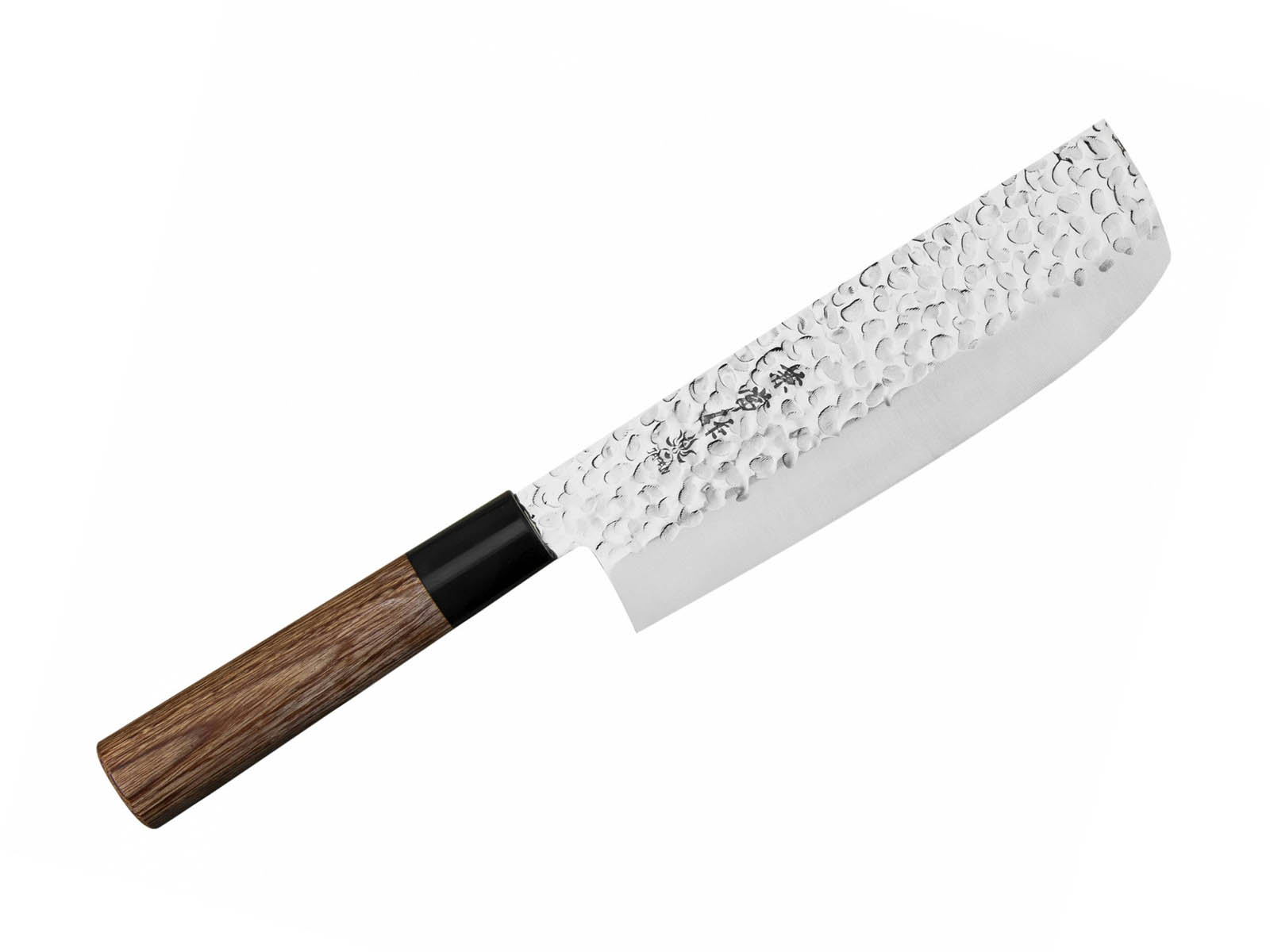 Nóż Kanetsune Nakiri 16,5 cm to nóż przeznaczony do cięcia ziół i warzyw. Cienka, prostokątna klinga pozwala uzyskać półprzezroczyste plastry, a także przenieść pokrojone składniki do salaterki lub na patelnię. Prosta krawędź tnąca służy do krojenia przede wszystkim w linii pionowej, z zastosowaniem wielu różnych technik, takich jak julienne czy chiffonade