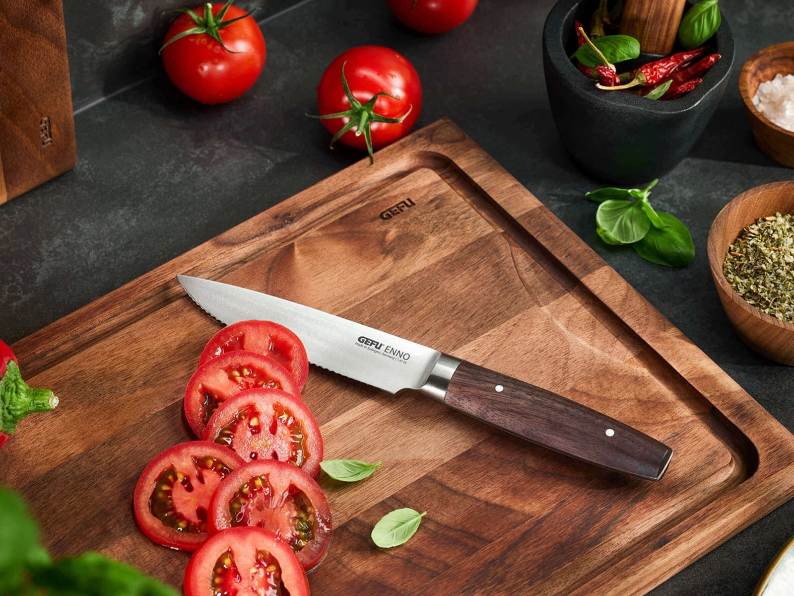 Nóż uniwersalny z ząbkami GEFU Enno to poręczne narzędzie, które łączy wysoką funkcjonalność ze stylem i klasą w każdej kuchni.