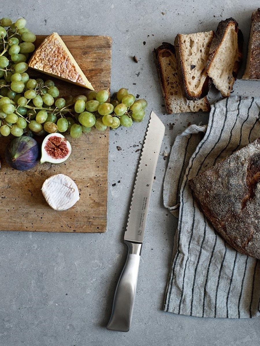 Elegancki wyjątkowo ostry i wytrzymały nóż do krojenia chleba z serii Grand Gourmet zaprojektowanej przez znanego japońskiego projektanta Makio Hasuike.