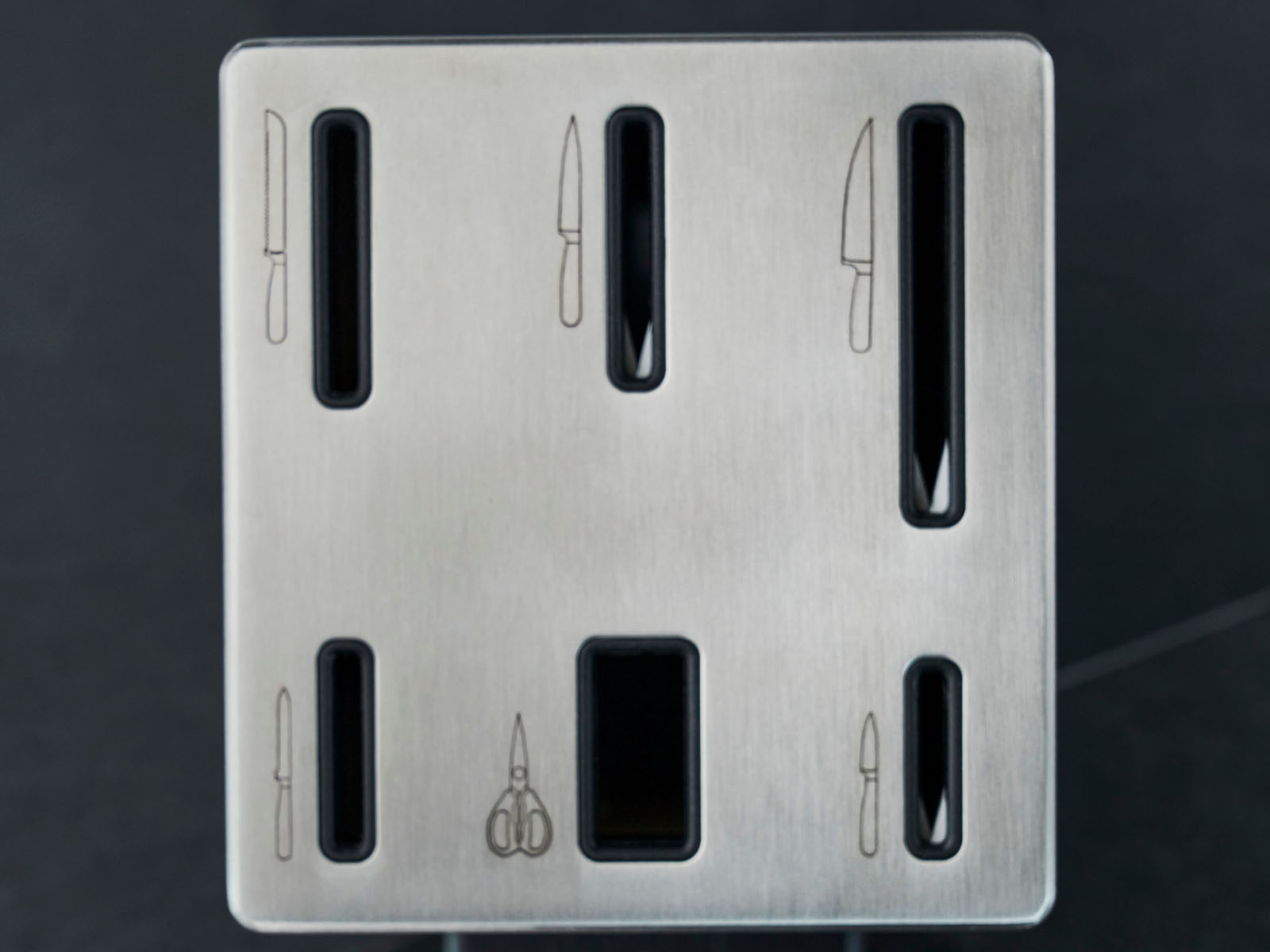 W czym tkwi sekret? W otworach na noże z gładkimi ostrzami - nóż do warzyw i owoców, nóż do wędlin oraz nóż szefa kuchni, znajdują się dwa ceramiczne kamienie szlifierskie. Każdy otwór dostosowany jest do konkretnego noża, dzięki czemu ostrzenie odbywa się pod doskonałym kątem gwarantując trwałość krawędzi tnącej i najwyższą jakość na długie lata. Dla ułatwienia przy każdym otworze znajdują się proste piktogramy, wskazujące właściwe miejsca dla właściwego noża.