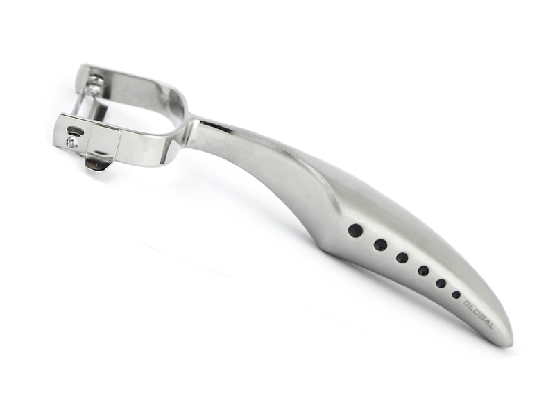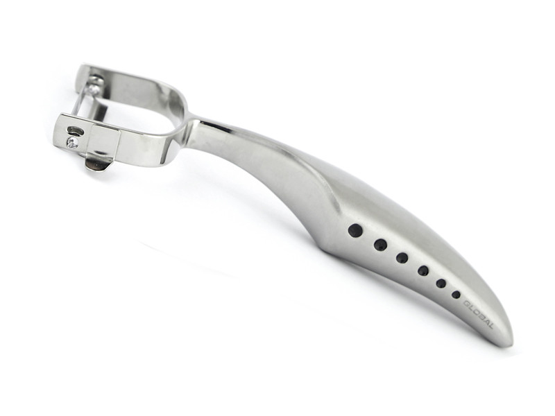 Global GS-68 to ekskluzywna profesjonalna stalowa obieraczka. Jest to funkcjonalna obieraczka do owoców i warzyw, która nie ustępuje znakomitym nożom Global zarówno pod względem ostrości, jak i eleganckiego designu. Gładkie ostrze ścina skórkę równo i wyjątkowo cienko, dzięki czemu produkty zachowują więcej cennych składników odżywczych. Ergonomiczna rękojeść minimalizuje efekt zmęczenia dłoni podczas dłuższej pracy. Obieraczka jest także doskonale wyważona, co zwiększa jej skuteczność i gwarantuje pełną kontrolę nad narzędziem.