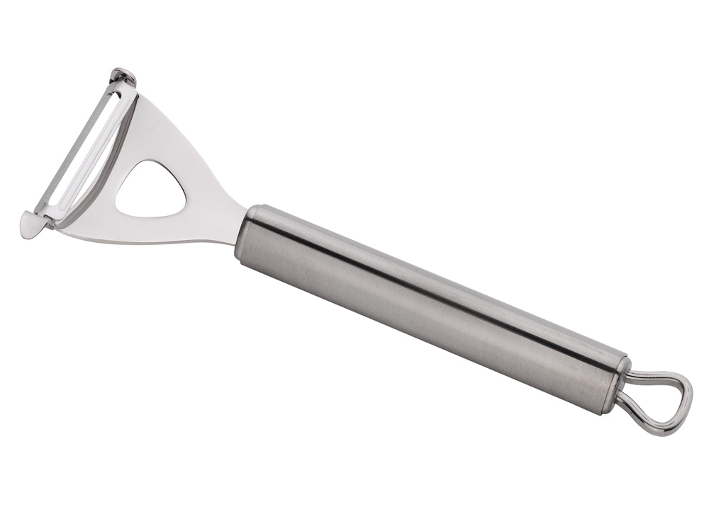 Oryginalny obierak kuchenny z poziomym ostrzem wykonany z wysokiej jakości stali nierdzewnej.