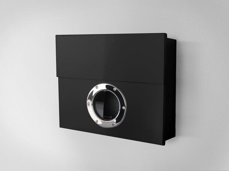 Skrzynka ozdobiona jest praktycznym i jakże eleganckim szklanym bulajem, czyli okrągłym okienkiem, które umożliwia sprawdzenie czy w skrzynce czekają listy. Wielkość otworu do wkładania listów to 40 x 4 cm