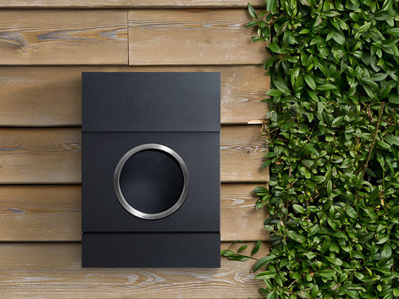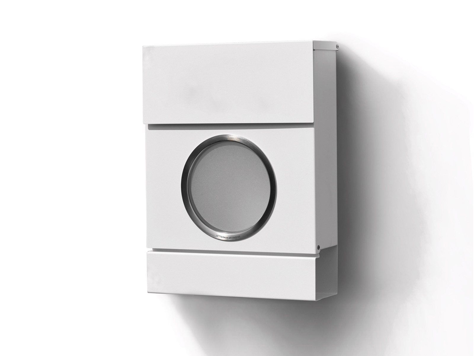 Przednia ścianka skrzynki posiada okrągłe szklane okienko z brzegiem ze stali nierdzewnej, które umożliwia identyfikację z zewnątrz czy w skrzynce znajdują się listy.