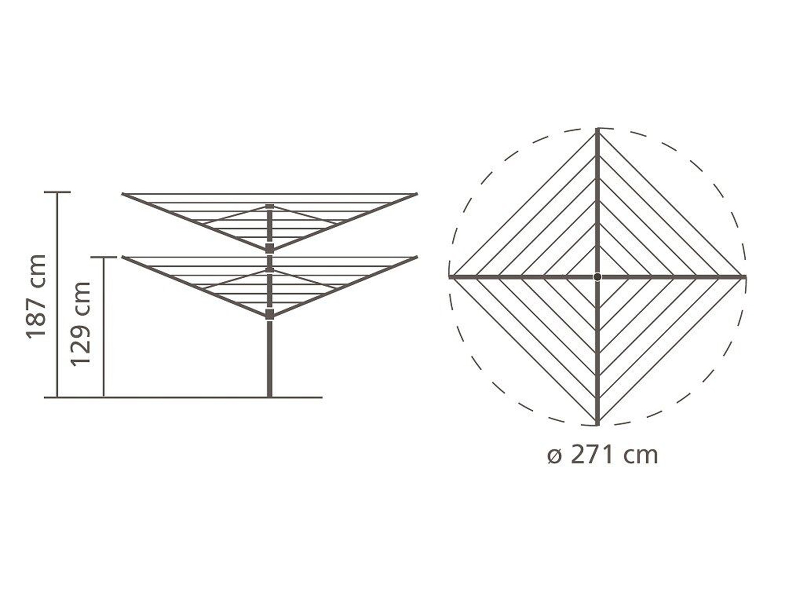 Suszarka posiada solidny dwuczęściowy dzielony słupek stabilnie podtrzymujący konstrukcję ramion z otworami do regulacji ich wysokości - regulacja wysokości ramion suszarki bezstopniowa w zakresie od 129 do 187 cm, co umożliwia idealnie dopasowanie wysokości powierzchni roboczej podczas wieszania prania oraz doskonale sprawdza się przy wietrzeniu pościeli. Montaż obu części słupka łatwy na zatrzask (materiały montażowe w zestawie).