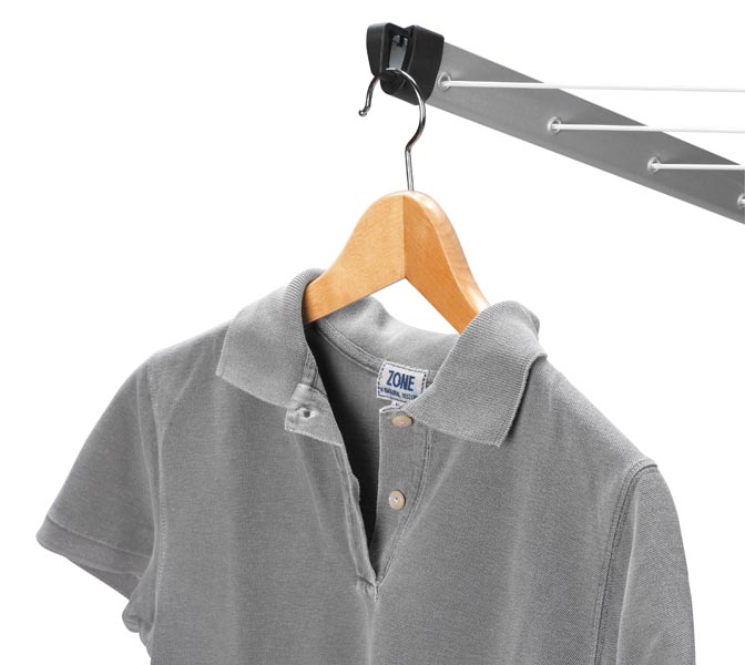 Ramiona suszarki obrotowe, obracają się bez wysiłku nawet gdy są całkowicie załadowane mokrym praniem, na końcach ramion znajdują się specjalne otwory pozwalające zawiesić ubrania na wieszakach.