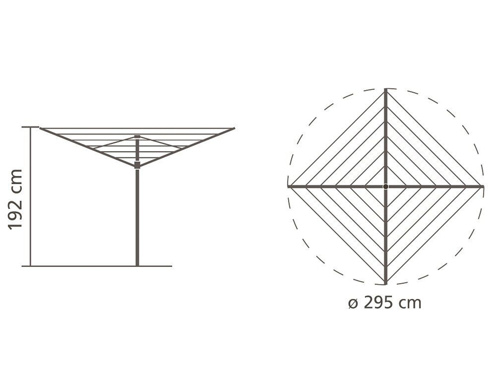 Suszarka posiada 3-stopniową regulację wysokości (maksymalna wysokość ramion 192 cm) oraz solidny słupek podtrzymujący konstrukcję ramion.