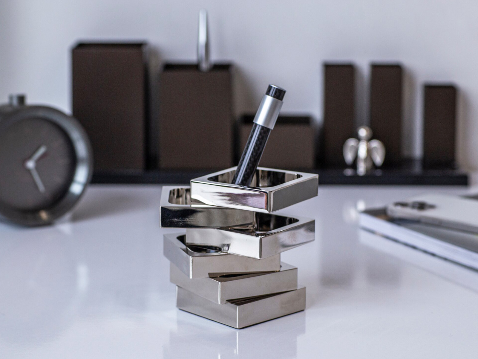 Elegancki i niezwykle oryginalny organizer pojemnik do podręcznego przechowywania na biurku: długopisów, piór i innych przyborów do pisania.