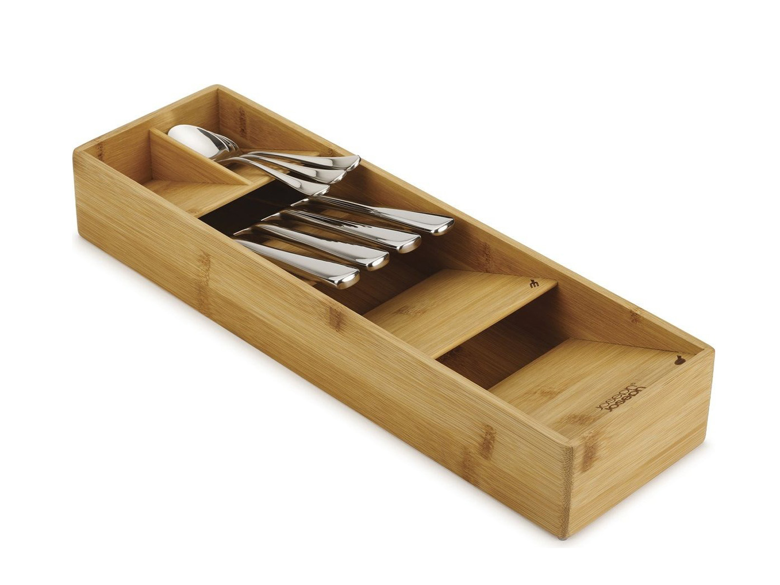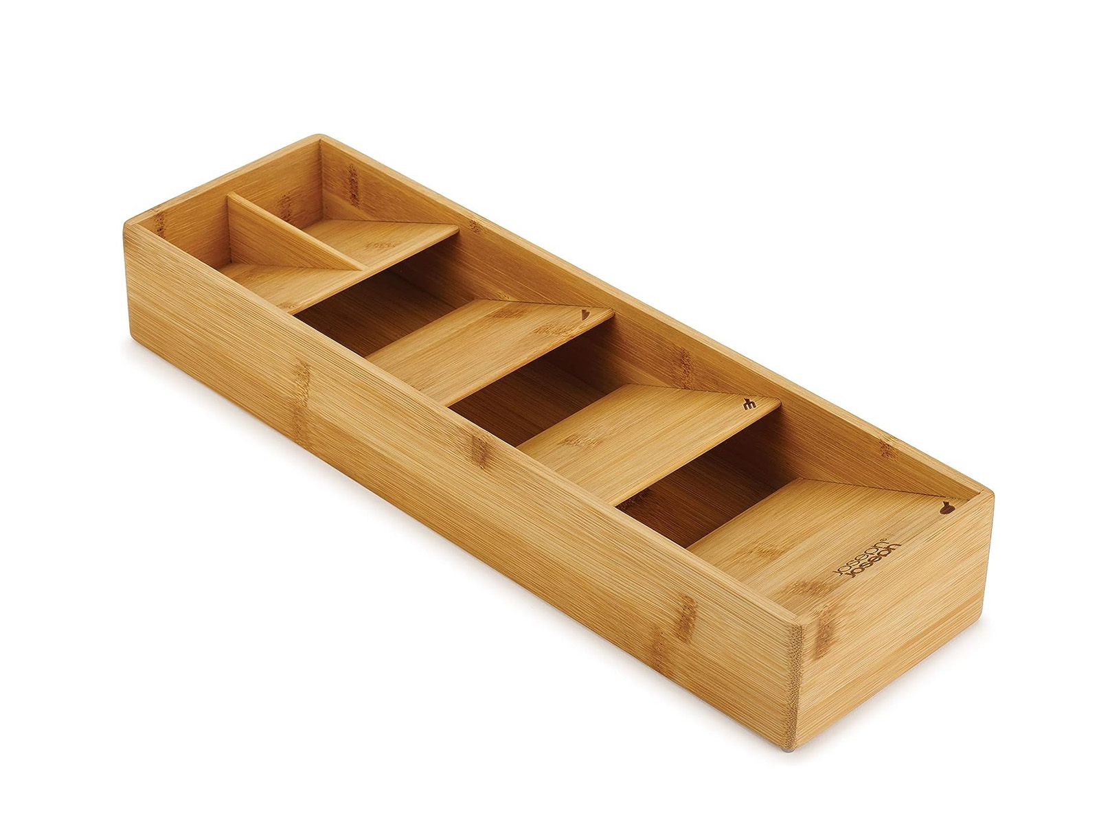 Organizer wykonany z naturalnego drewna bambusowego ze specjalnie zaprojektowanymi ułożonymi pod kątem 5-oma przegródkami.