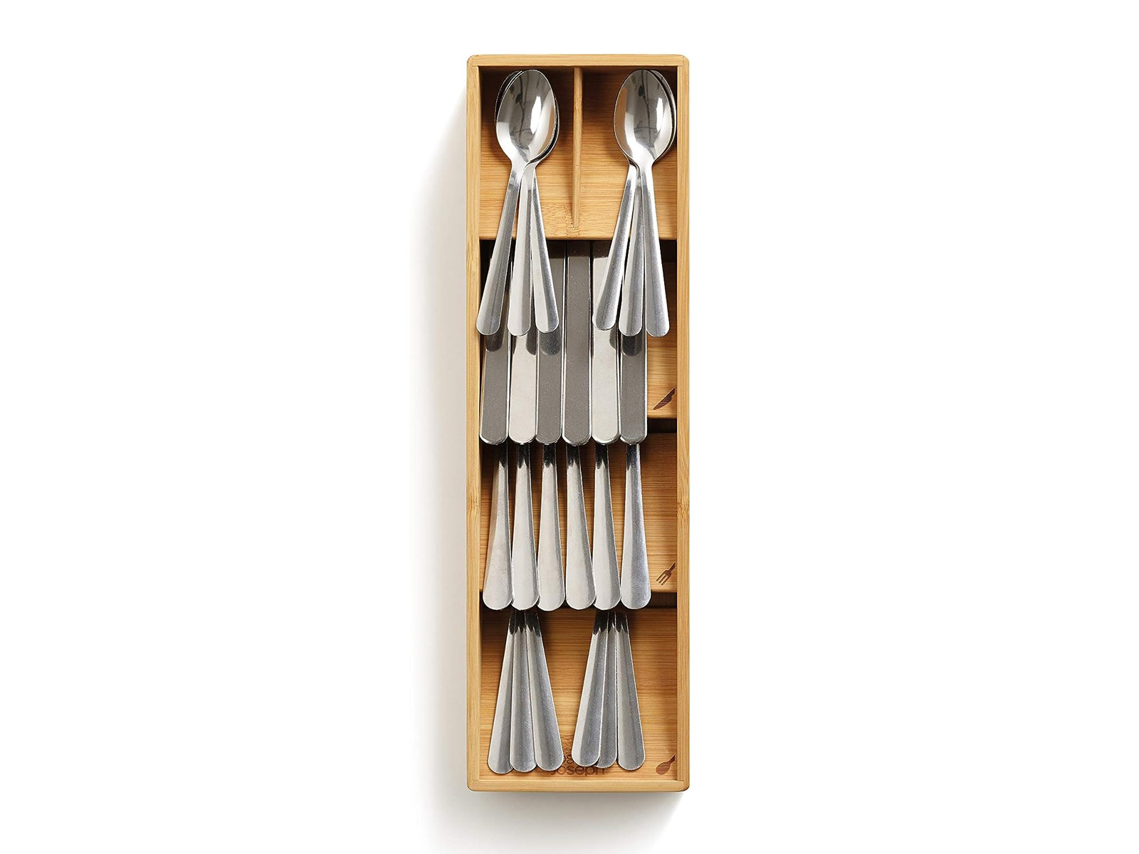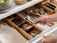 Przegródki ułożone są jedna na drugiej, dzięki czemu można przechowywać więcej sztućców na mniejszej przestrzeni.