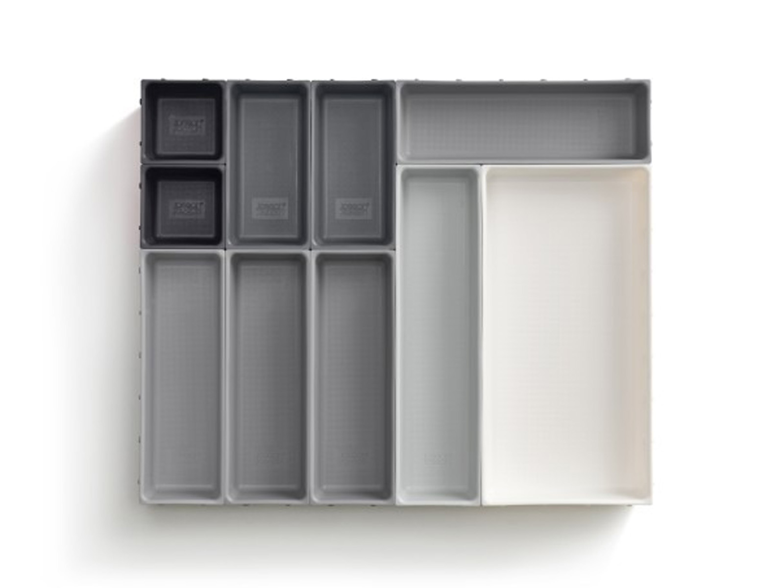 Pojemniki można różnie konfigurować, aby dostosować wkład do przestrzeni szuflady - konstrukcja organizera nadaje się do szuflad o minimalnej wysokości 7 cm.