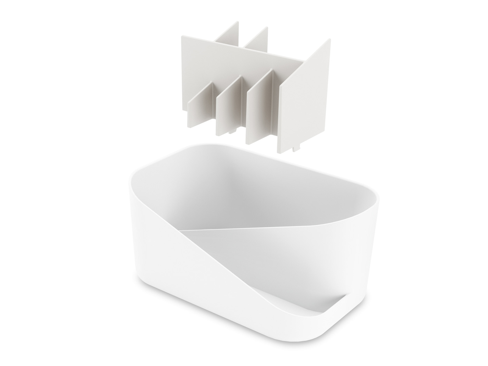 Organizer wykonany z łatwego do utrzymania w czystości tworzywa sztucznego, większa komora organizera posiada wyjmowany separator-kratkę w kolorze szarym.