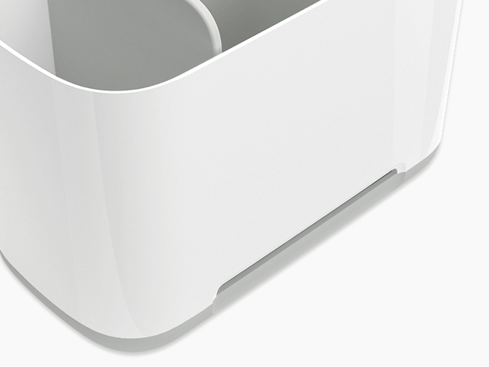 Pojemnik organizera można zdjąć z podstawy do oczyszczenia, a pozioma szczelina wentylacyjna umożliwia szybkie wysychanie jego wnętrza.