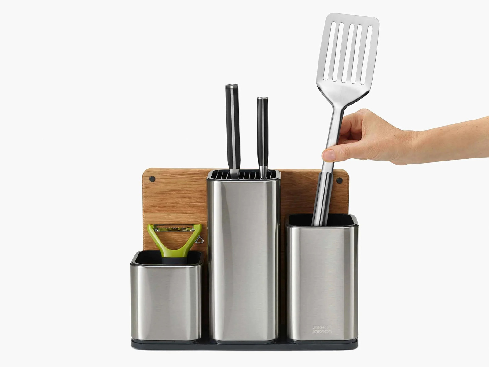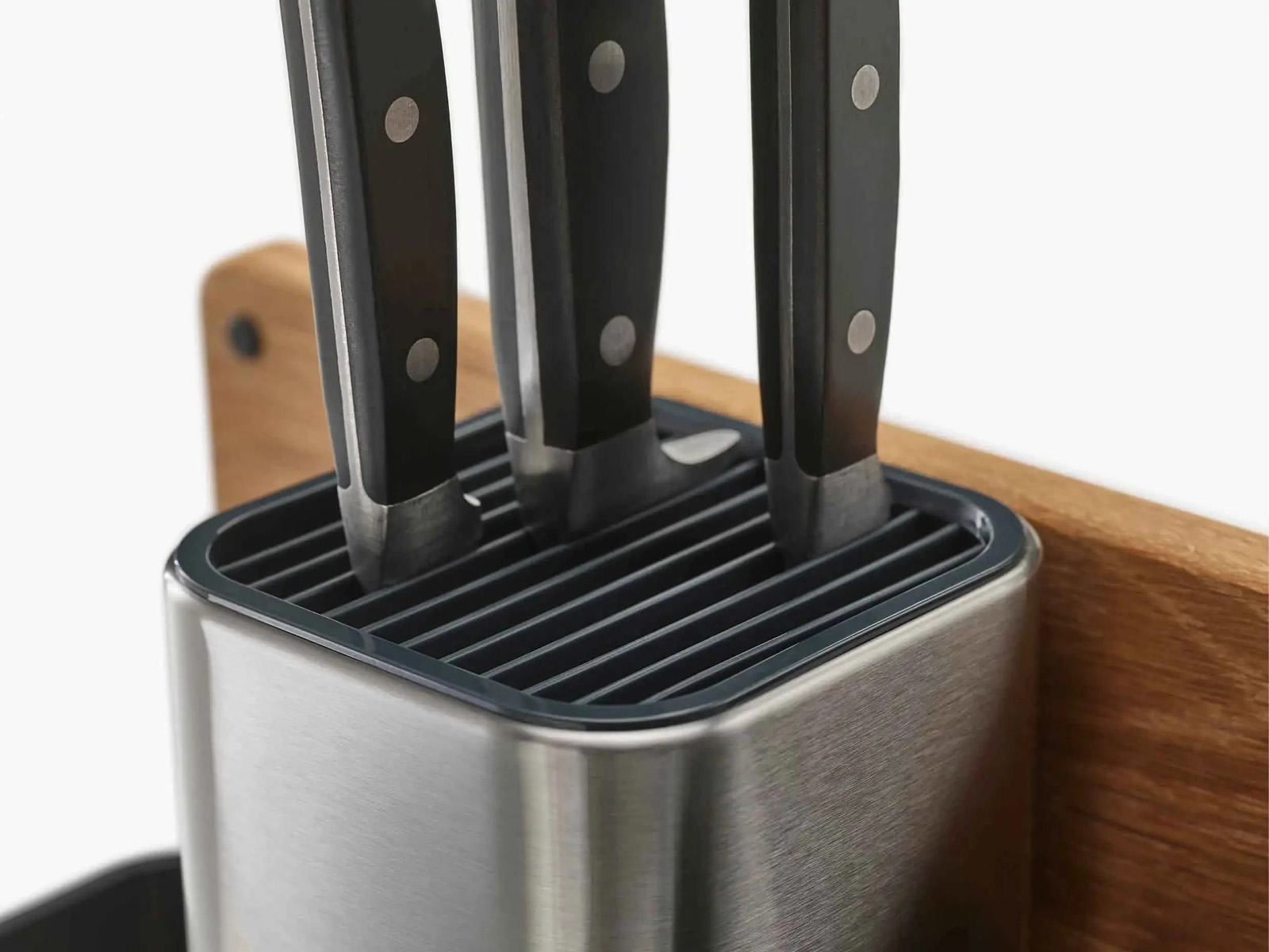 Elegancki i praktyczny nablatowy organizer kuchenny do podręcznego przechowywania noży, narzędzi i przyborów kuchennych w jednym wygodnym miejscu.